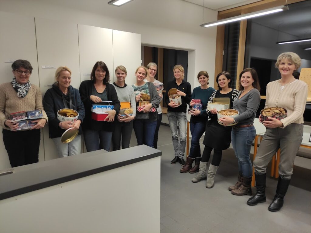 Am Vorabend des 1. Dezember 2023 trafen sich einige Backfreudige in der Schulküche der Grund- und Mittelschule Unterhaching. Angeleitet durch Bäckerin Claudia Zäch wollten wir gemeinsam für die Adventszeit Blitzplätzchen backen. Unser Plan: Ohne langes Ausstechen oder kompliziertes Formen, ohne schwierige Zutaten oder aufwendige Rezepte lauter unterschiedliche, duftende und knusprige Köstlichkeiten anzufertigen und dabei gemeinsam einen schönen Abend zu genießen und neue Energie für die nächsten Schulwochen zu tanken.