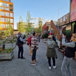 Erste Anlaufstation unserer Tour war das Münchner Kreativquartier. Auf dem Gelände der ehemaligen Luitpoldkaserne zwischen Neuhausen, Schwabing und Innenstadt gibt es eine lebendige Szene, die seit Jahren vielfältige und interdisziplinäre kreative Freiräume schafft und pflegt. Hier betreiben Künstler/Innen Ateliers und offene Werkstätten sowie Designer/Innen ihre Studios. Das Stadtbild hier überrascht mit alten Industriebauten, bunten Graffiti, wild wuchernden Gärten und schafft so eine inspirierende Atmosphäre.